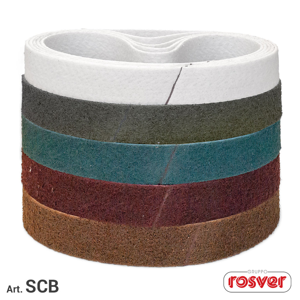 Nastri Scotch-Brite™ per Ruote Gonfiabili/Espansione, giuntati da noi con materiale Scotch-Brite™ per satinare l’inox e rimuovere ossidazioni.