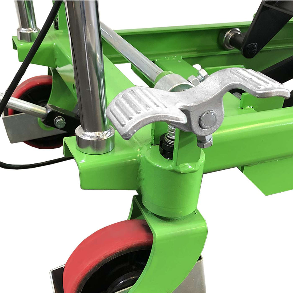 Dotato di una piattaforma robusta da 1016x510 mm, assicura un supporto stabile per il carico, mentre la struttura solida e il peso di 114 kg ne garantiscono la stabilità durante l’utilizzo. L’altezza minima della piattaforma di 415 mm consente un’ampia gamma di applicazioni, mentre la pratica maniglia ergonomica da 990 mm facilita il controllo del sollevatore.